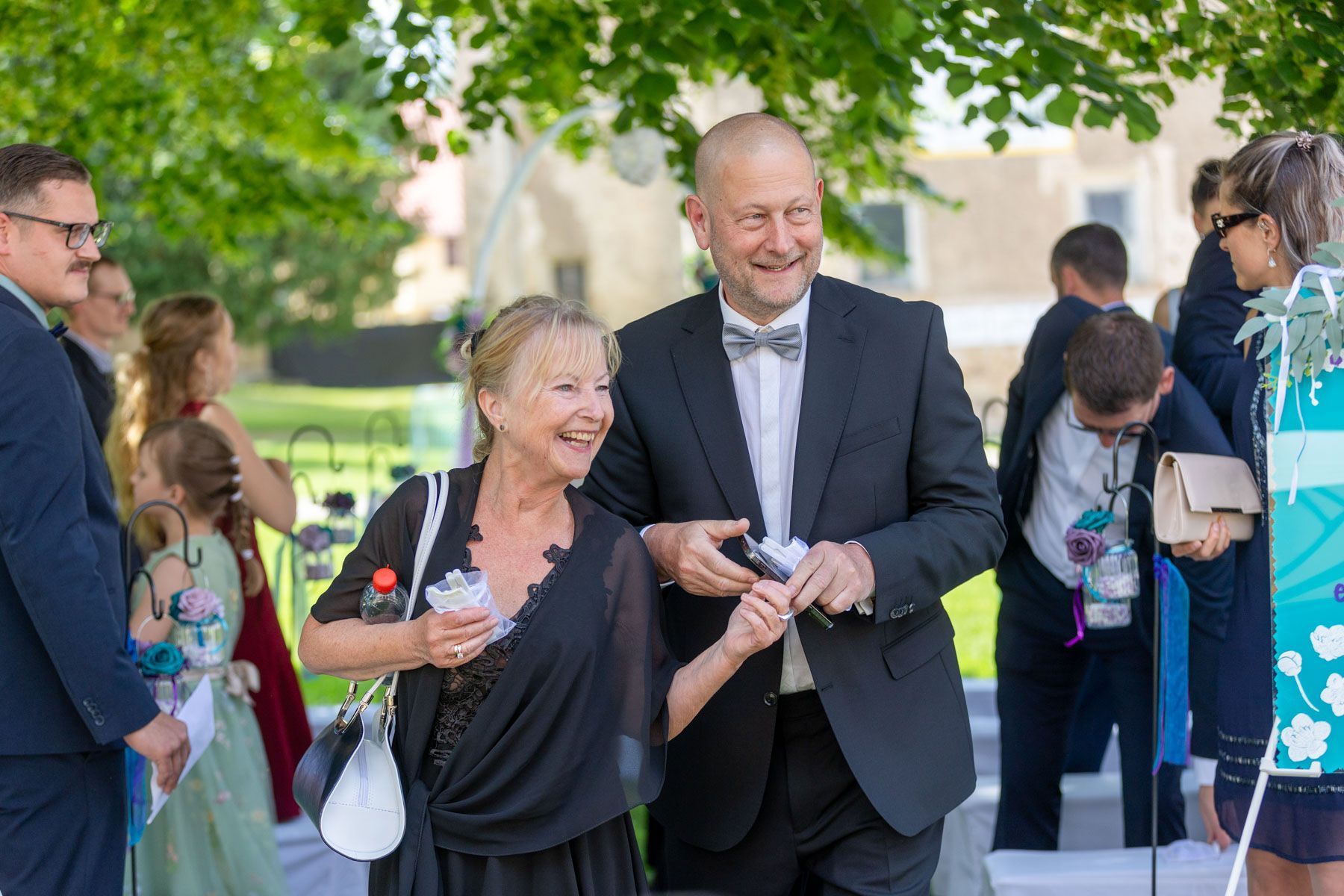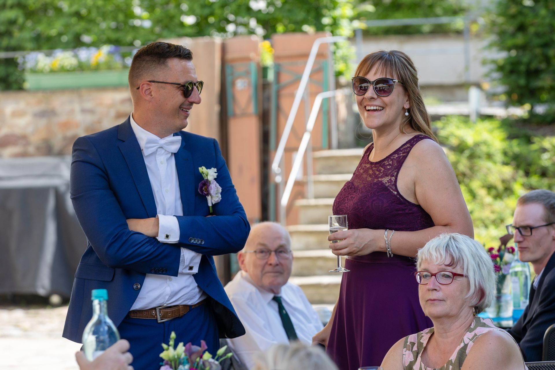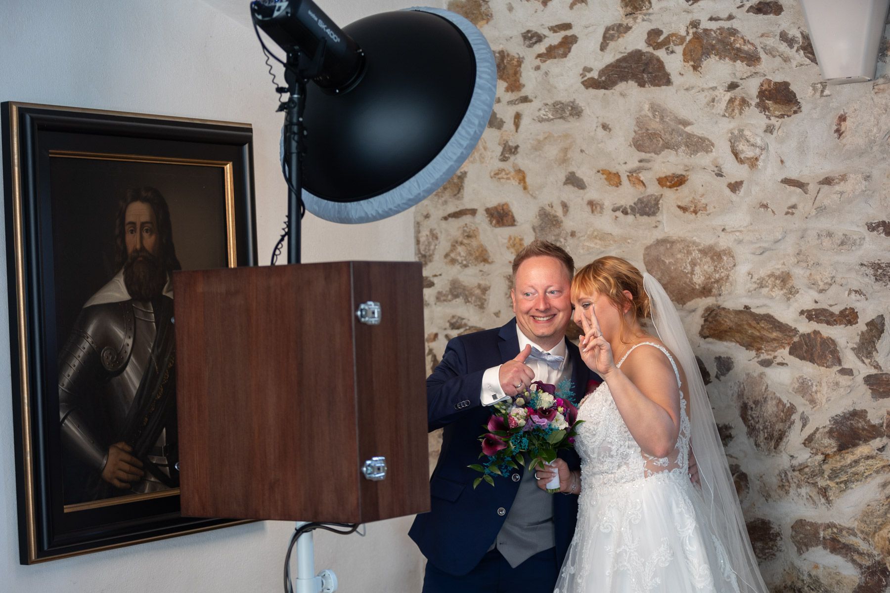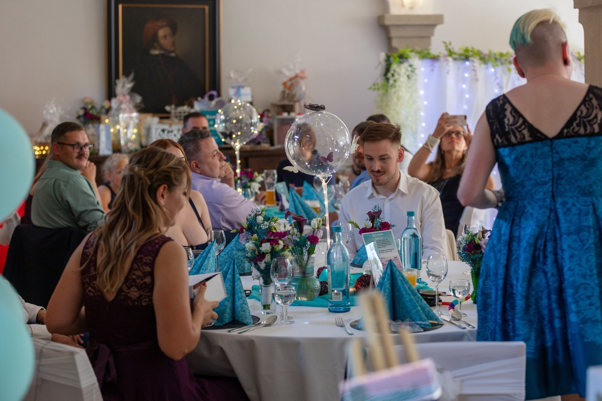 Nach der Zeremonie genossen wir den Nachmittag bei einem festlichen Empfang. Während die Sonne langsam unterging, konnten wir gemeinsam köstliche Speisen genießen, herzliche Gespräche führen und den Klang der Musik in der Luft spüren. Der Abend wurde mit einer fröhlichen Feier im historischen Festsaal fortgesetzt, wo wir das Tanzbein schwangen und unvergessliche Momente teilten.