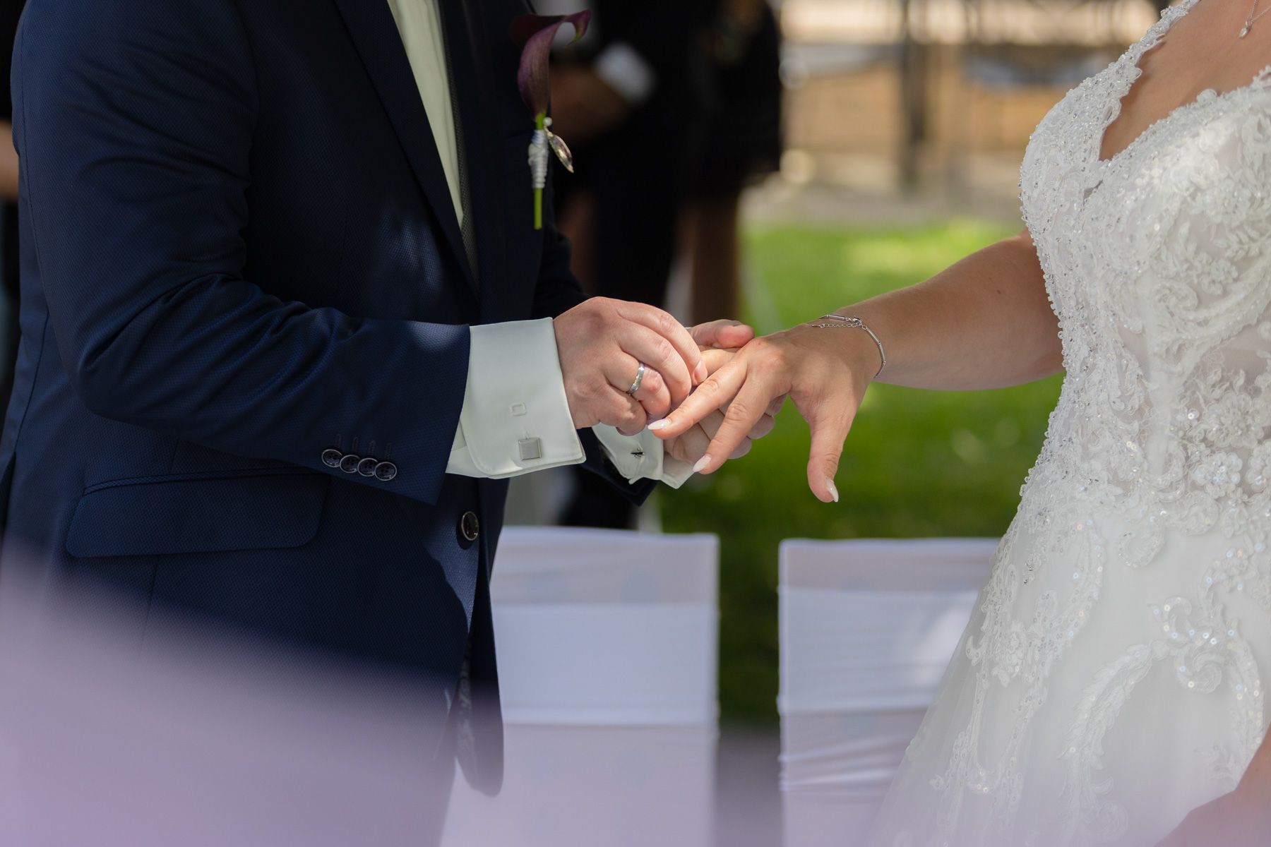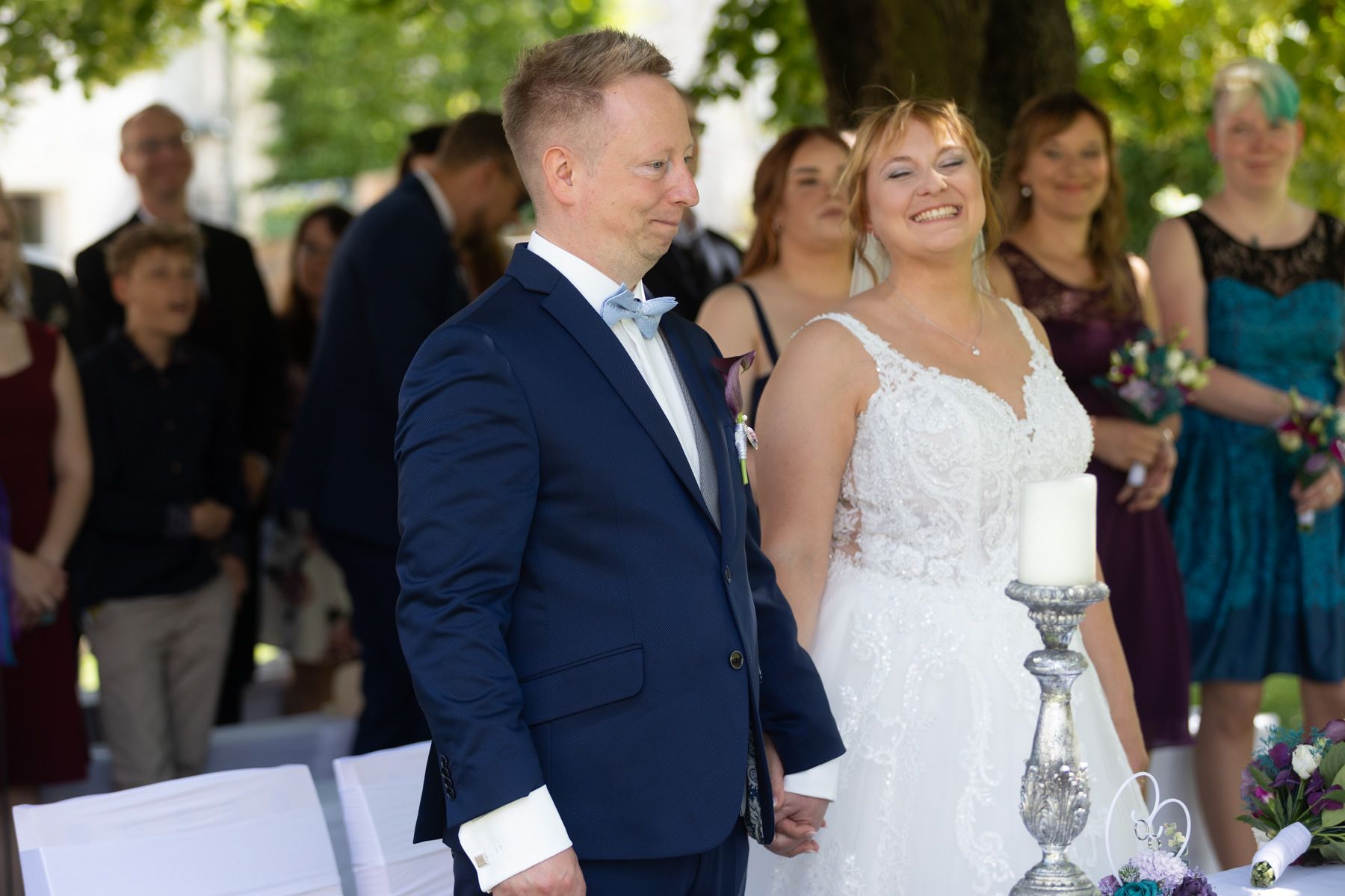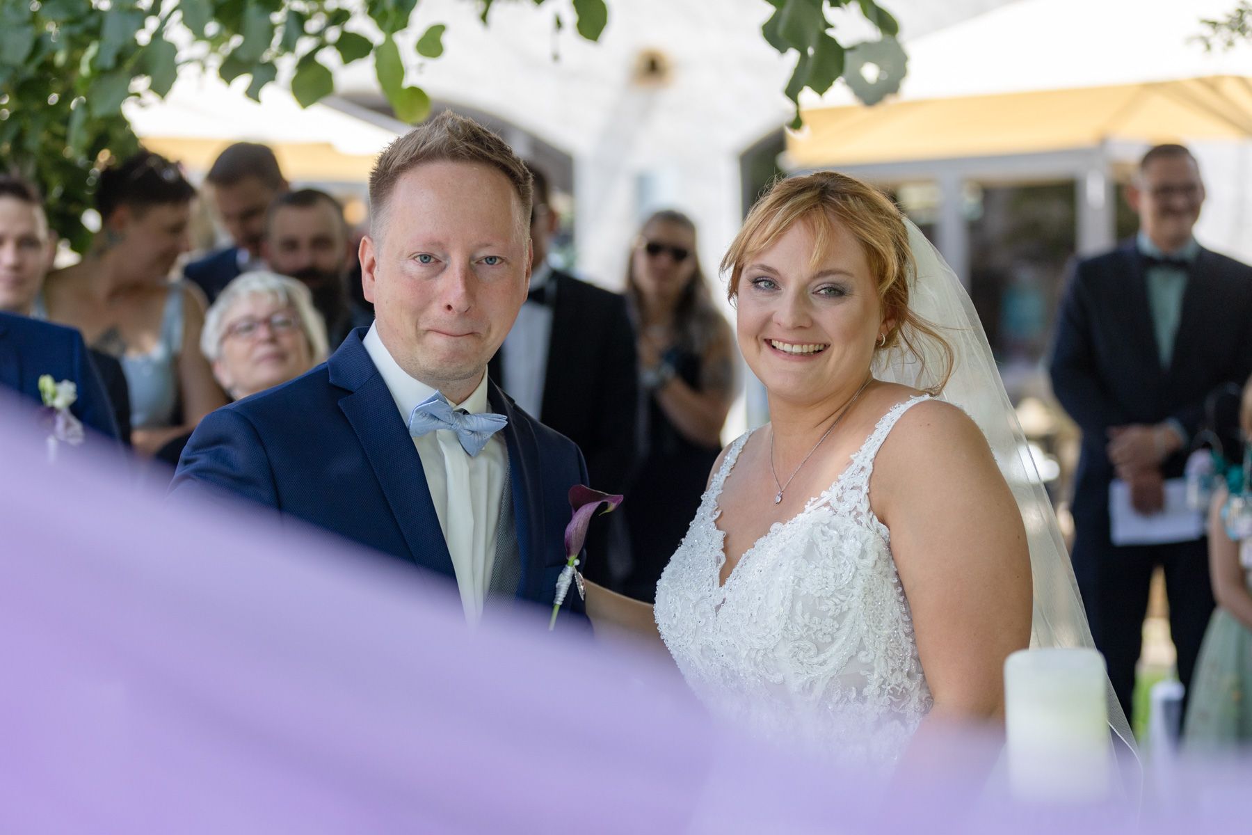 Der Tag begann mit einer feierlichen Zeremonie im idyllischen Garten des Guts, umgeben von duftenden Blumen und dem sanften Rauschen der Blätter. Während wir uns das Ja-Wort gaben, hoffen wir, dass ihr die gleiche Aufregung und Freude verspürt habt, die uns in diesem Augenblick erfüllte.